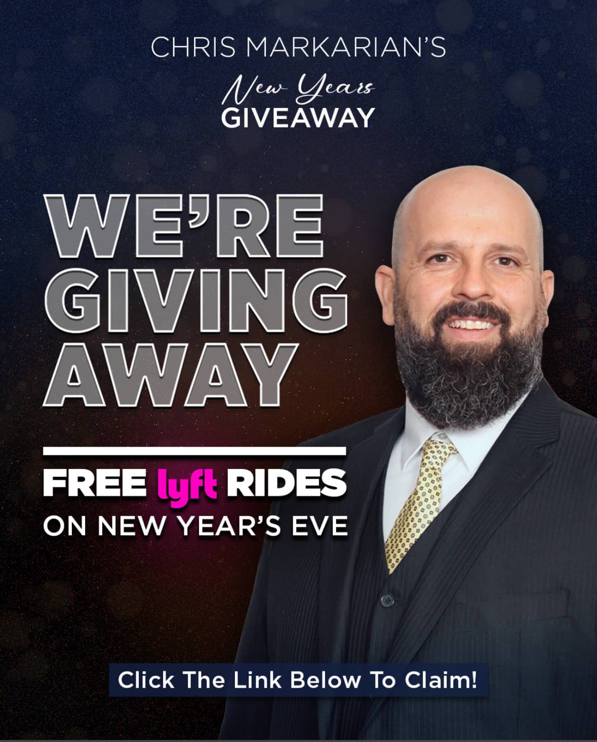 That’s why we’re giving away free Lyft rides for New Year’s Eve, so you can enjoy the night and arrive home safely.